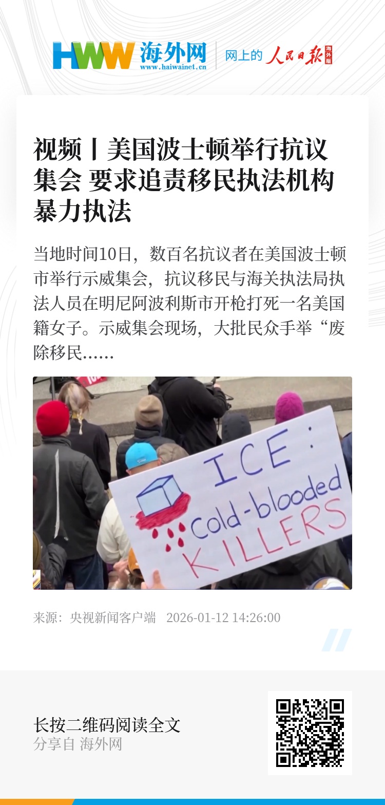 示威活动由美国多个民间团体发起。主办方在一份声明中说,联邦移民执法机构对社区成员滥施暴力、滥用职权,“这起杀戮事件仅是冰山一角”。