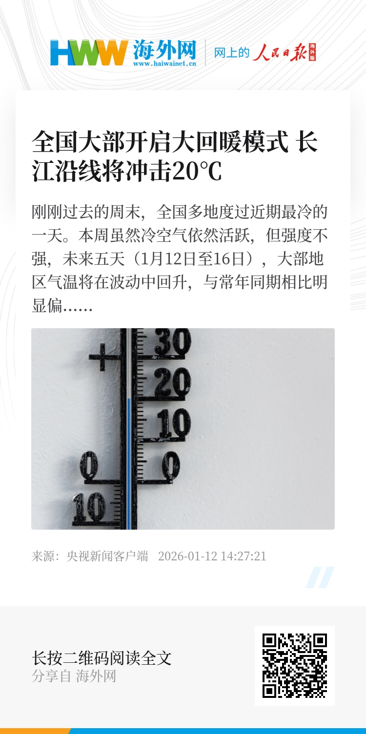刚刚过去的周末,全国多地度过近期最冷的一天。本周虽然冷空气依然活跃,但强度不强,未来五天(1月12日至16日),大部地区气温将在波动中回升,与常年同期相比明显偏暖,长江沿线最高气温有望冲击20℃,将在“三九”期间体验春日般的温暖。