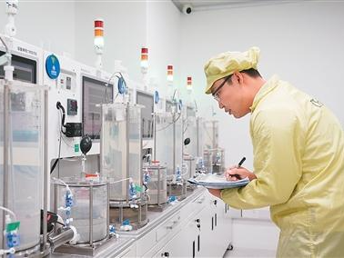 江苏省苏州工业园区加快建设开放创新的世界一流高科技园区,发展纳米新材料、生物医药及高端医疗器械产业。图为苏州一家医疗科技公司内,工程师在记录研发数据。