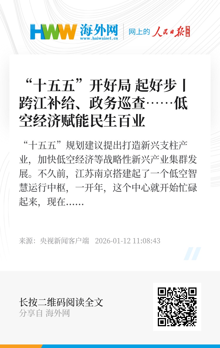 “十五五”规划建议提出打造新兴支柱产业,加快低空经济等战略性新兴产业集群发展。不久前,江苏南京搭建起了一个低空智慧运行中枢,一开年,这个中心就开始忙碌起来,现在那里的情况如何?总台记者带你一探究竟。