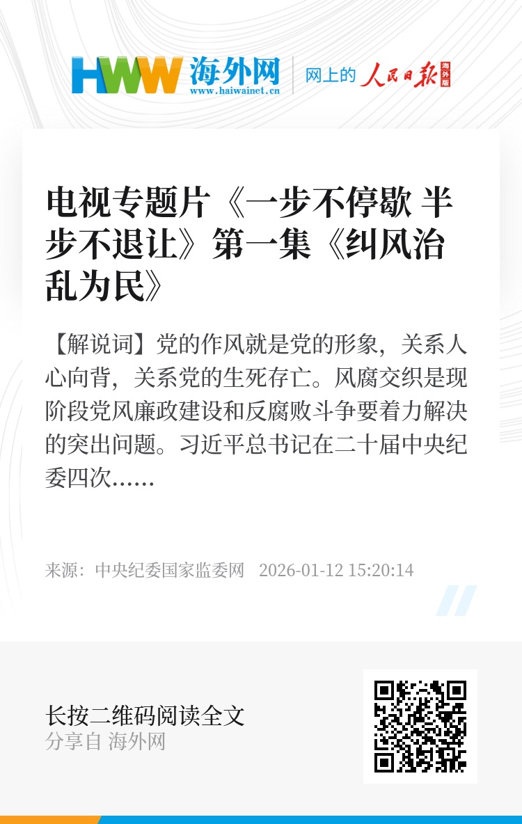 何树宏(中央纪委国家监委党风政风监督室副主任):开展群众身边不正之风和腐败问题集中整治,是党中央部署的一项重要任务。中央纪委国家监委强力推进,各地各有关部门合力攻坚。2024年超常规破题开局,2025年大纵深推进,2026年要在巩固提升中深化常治长效,严惩蝇贪蚁腐,让群众感到公平正义就在身边,不断夯实党的执政根基。