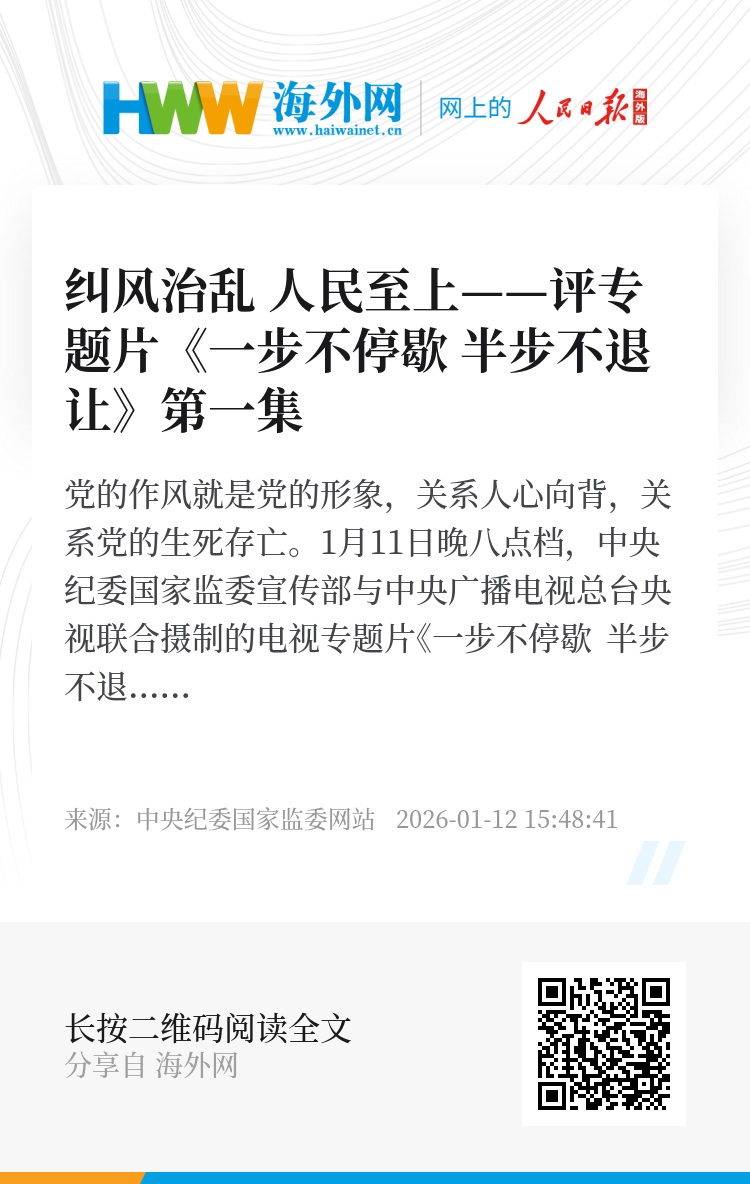 党的作风就是党的形象,关系人心向背,关系党的生死存亡。1月11日晚八点档,中央纪委国家监委宣传部与中央广播电视总台央视联合摄制的电视专题片《一步不停歇 半步不退让》第一集《纠风治乱为民》在央视综合频道首播,迅速刷屏。