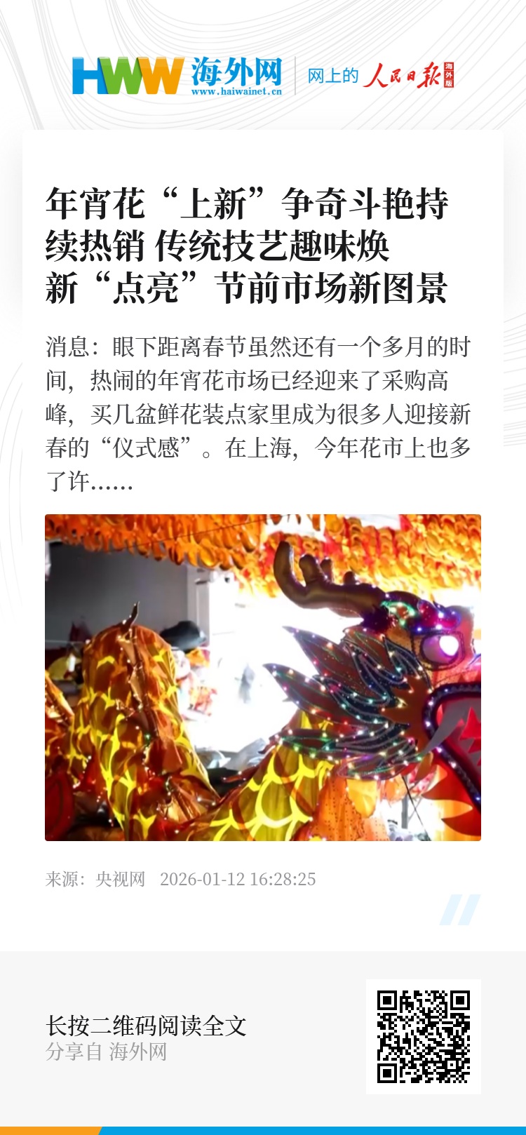 央视网消息:眼下距离春节虽然还有一个多月的时间,热闹的年宵花市场已经迎来了采购高峰,买几盆鲜花装点家里成为很多人迎接新春的“仪式感”。在上海,今年花市上也多了许多新品种,受到不少消费者欢迎。