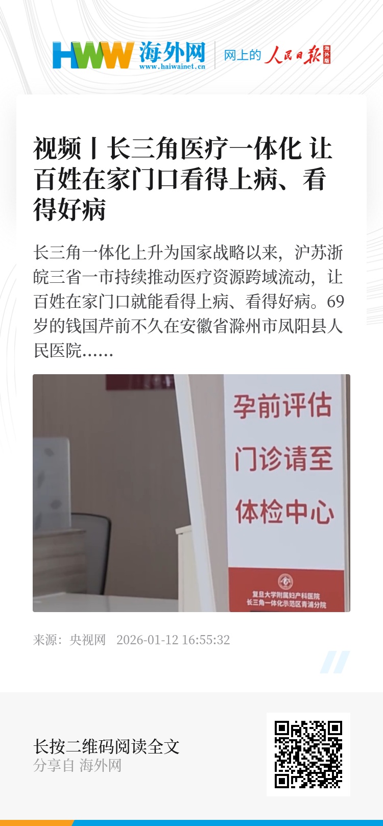 随着“十五五”规划各项部署落地,长三角持续以制度创新打破行政边界,以数智赋能提升服务效能,让公平可及、优质高效的健康服务惠及更多群众。