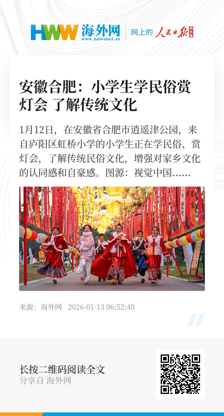 32923085,.安徽合肥:小学生学民俗赏灯会 了解传统文化,.2026-01-13 06:52:40,.204441,.张荣耀、李萌