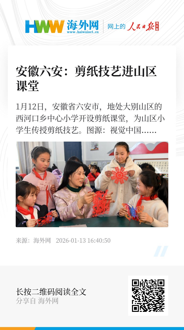 32923317,.安徽六安:剪纸技艺进山区课堂,.2026-01-13 16:40:50,.204589,.黄之安、侯兴川