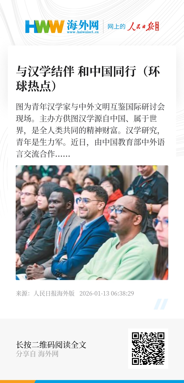 汉学源自中国、属于世界,是全人类共同的精神财富。汉学研究,青年是生力军。