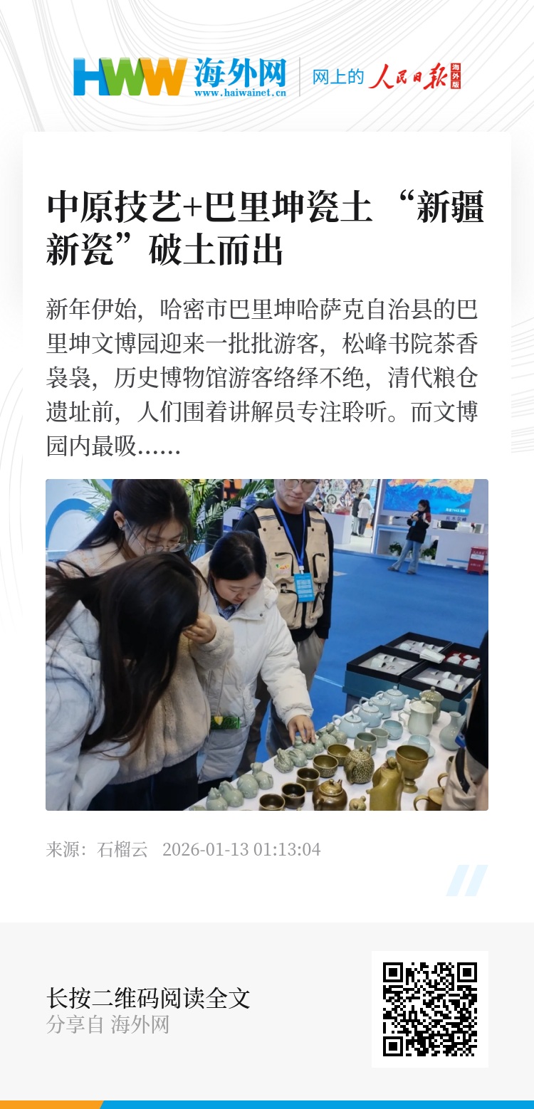 从技术突破到文化融合,从产业布局到数智化应用,巴里坤的新瓷实践,正在书写新疆陶瓷产业的新篇章。马向辉说:“我们要让充满文化色彩的新瓷,走进新疆各族群众生活。”