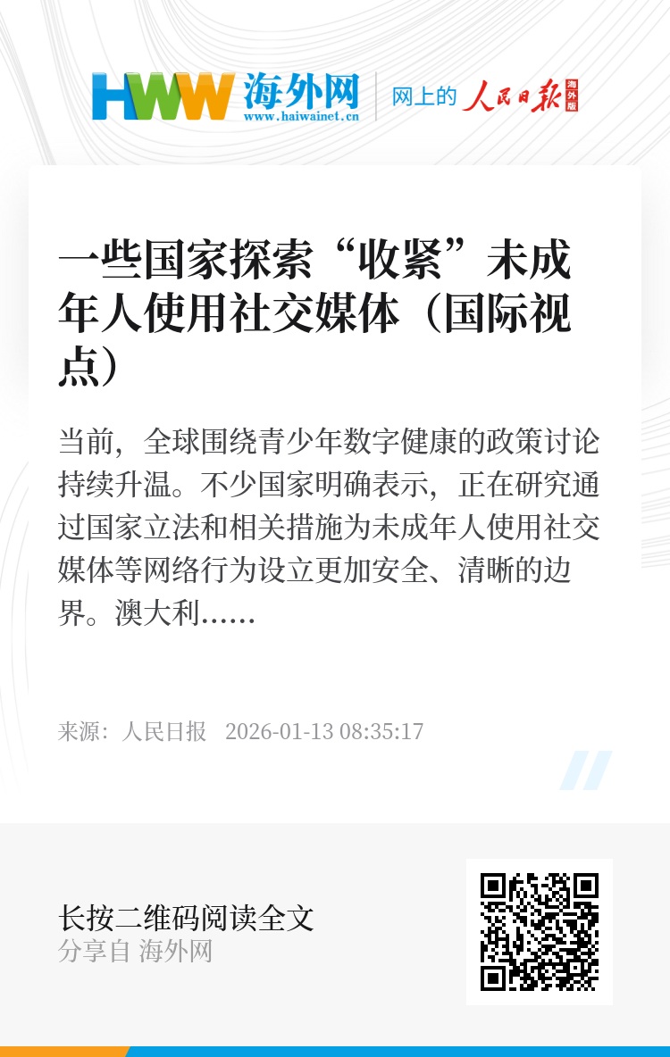 当前,全球围绕青少年数字健康的政策讨论持续升温。不少国家明确表示,正在研究通过国家立法和相关措施为未成年人使用社交媒体等网络行为设立更加安全、清晰的边界。澳大利亚、丹麦、马来西亚已经开始“收紧”对未成年人社交媒体的管控措施,以加强对特定群体的网络保护,构建更完善的数字环境。