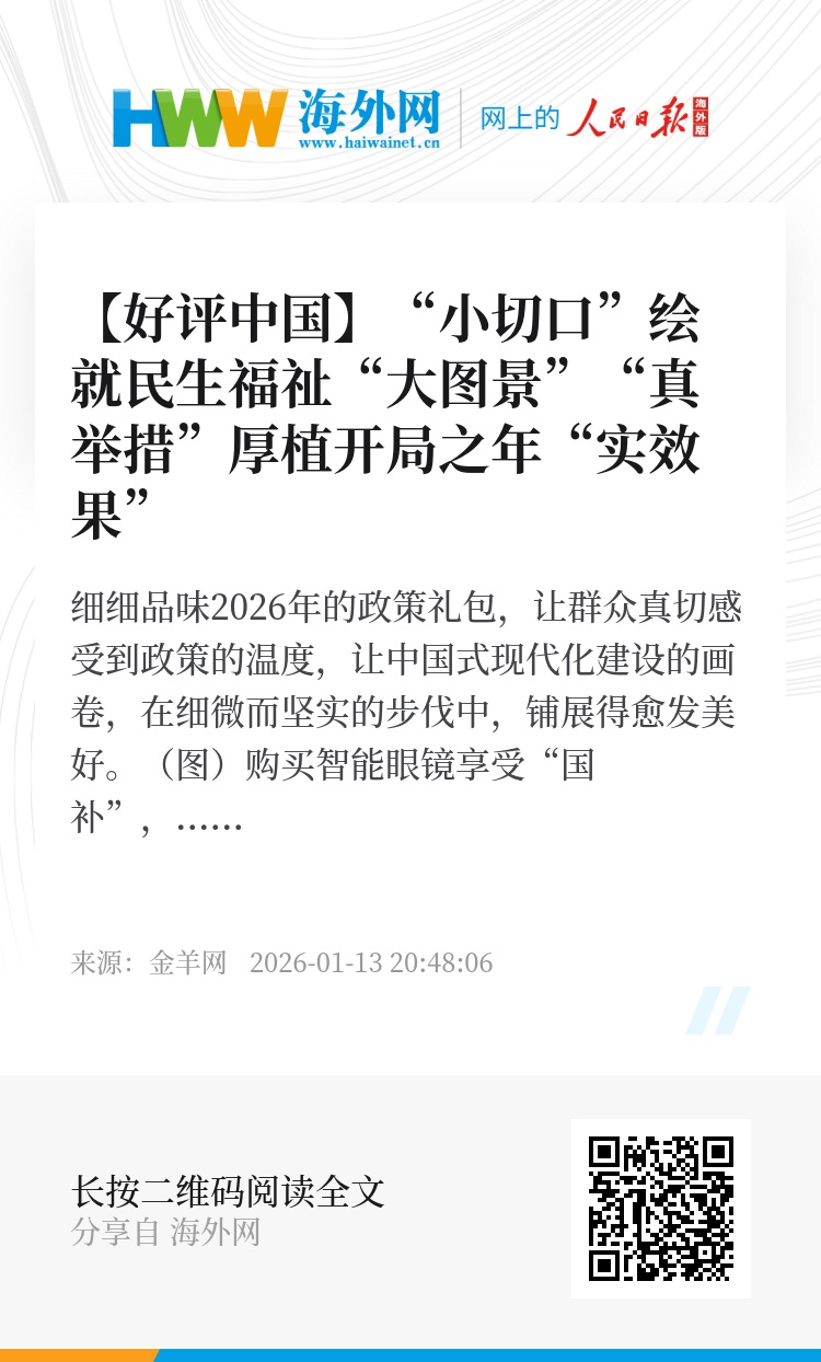 细细品味2026年的政策礼包,看似针对具体领域的“小修小补”,实则是蕴含系统性思维的宏观布局。从提振消费的精准施策到交通服务的细节优化,从住房税收的适时调整到产业升级的全面引导,每一拳都打在关节点上,每一招都连着民生与发展大计。这种“组合拳”式的政策供给,既避免了头痛医头、脚痛医脚的短视,也杜绝了大水漫灌、一刀切带来的副作用,如同一个个精准的“齿轮”相互咬合、协同发力,以“小切口”解决“大问题”,用“真举措”带来“实效果”。这既让群众真切感受到政策的温度,也为经济高质量发展夯实了基础,让中国式现代化建设的画卷,在细微而坚实的步伐中,铺展得愈发美好。(金羊网 文/林伟)