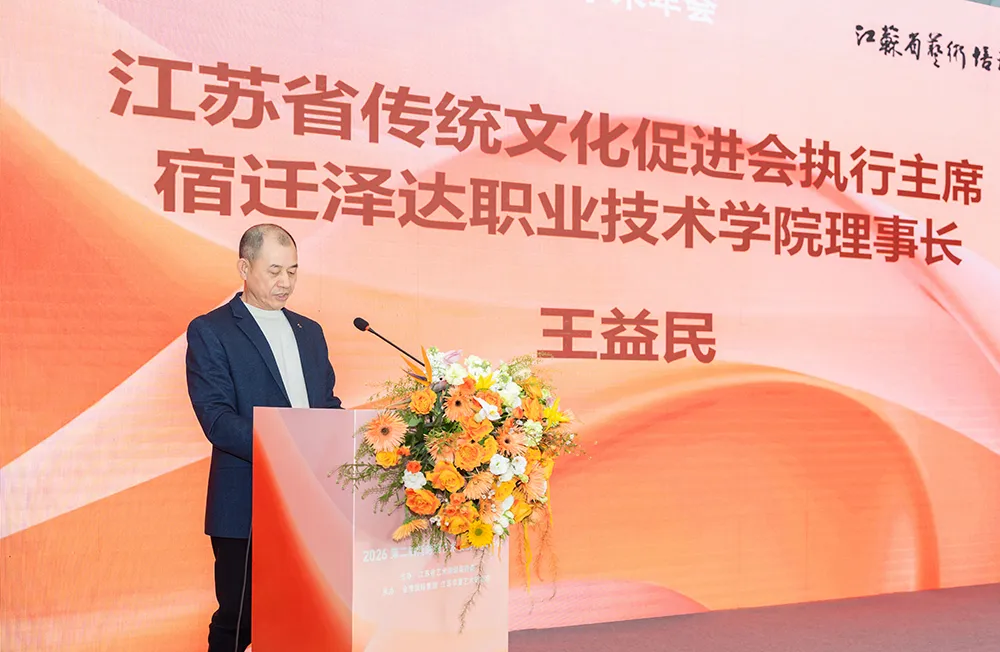 江苏省艺术培训促进会副主席吴向杰主持开幕式。江苏省传统文化促进会常务副主席、宿迁泽达职业技术学院理事长、韩国龙仁大学荣誉博士王益民,金鹰国际集团总经理李进分别致欢迎辞。现场还播放了中国作家协会原党组成员、书记处书记、副主席何建明,中国戏剧家协会原副主席瞿弦和,江苏省委原宣传部常务副部长、江苏省文联名誉主席章剑华,以及乒乓球世界冠军蒯曼专门发来的祝贺视频,不仅为年会增添了光彩,更彰显了社会各界对艺术教育事业的高度关注。