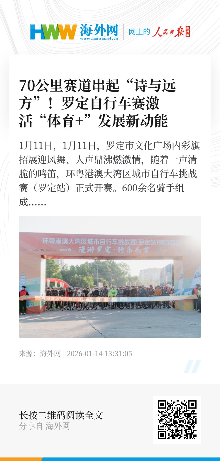 1月11日,1月11日,罗定市文化广场内彩旗招展迎风舞、人声鼎沸燃激情,随着一声清脆的鸣笛,环粤港澳大湾区城市自行车挑战赛(罗定站)正式开赛。600余名骑手组成的“彩色洪流”穿梭于山水之间,在70公里的“移动文旅长廊”中感受千年古邑的红色底蕴与非遗魅力,更见证这座城市以体育为笔,书写“百千万工程”的生动答卷。