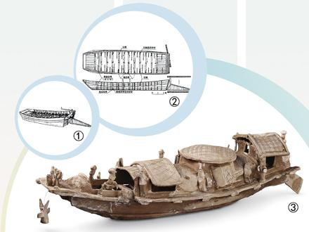 图③:在广州出土的东汉陶船模型,该模型现藏于中国国家博物馆。