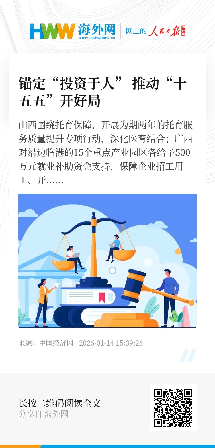 山西围绕托育保障,开展为期两年的托育服务质量提升专项行动,深化医育结合;广西对沿边临港的15个重点产业园区各给予500万元就业补助资金支持,保障企业招工用工、开展培训;西藏细化推进“四好农村路”建设,进一步完善县乡村三级物流体系……“十五五”开局之际,各地陆续推出一系列投资于人的新举措,为千家万户添福祉。