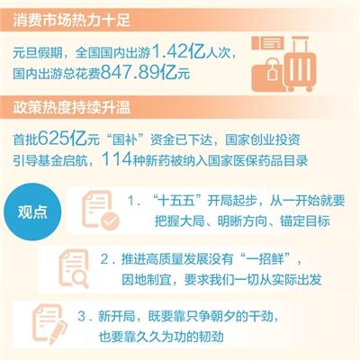 抢抓时间窗口,主动靠前发力,政策热度持续升温。“两新”打头阵,首批625亿元“国补”资金已下达;“两重”接续发力,国家发展改革委组织下达2026年提前批“两重”建设项目清单和中央预算内投资计划;国家创业投资引导基金启航,“购在中国”暨新春消费季启动,114种新药被纳入国家医保药品目录……以更大力度促消费、稳投资、惠民生,全力实现一季度良好开局,为“不断巩固拓展经济稳中向好势头”夯基垒台。