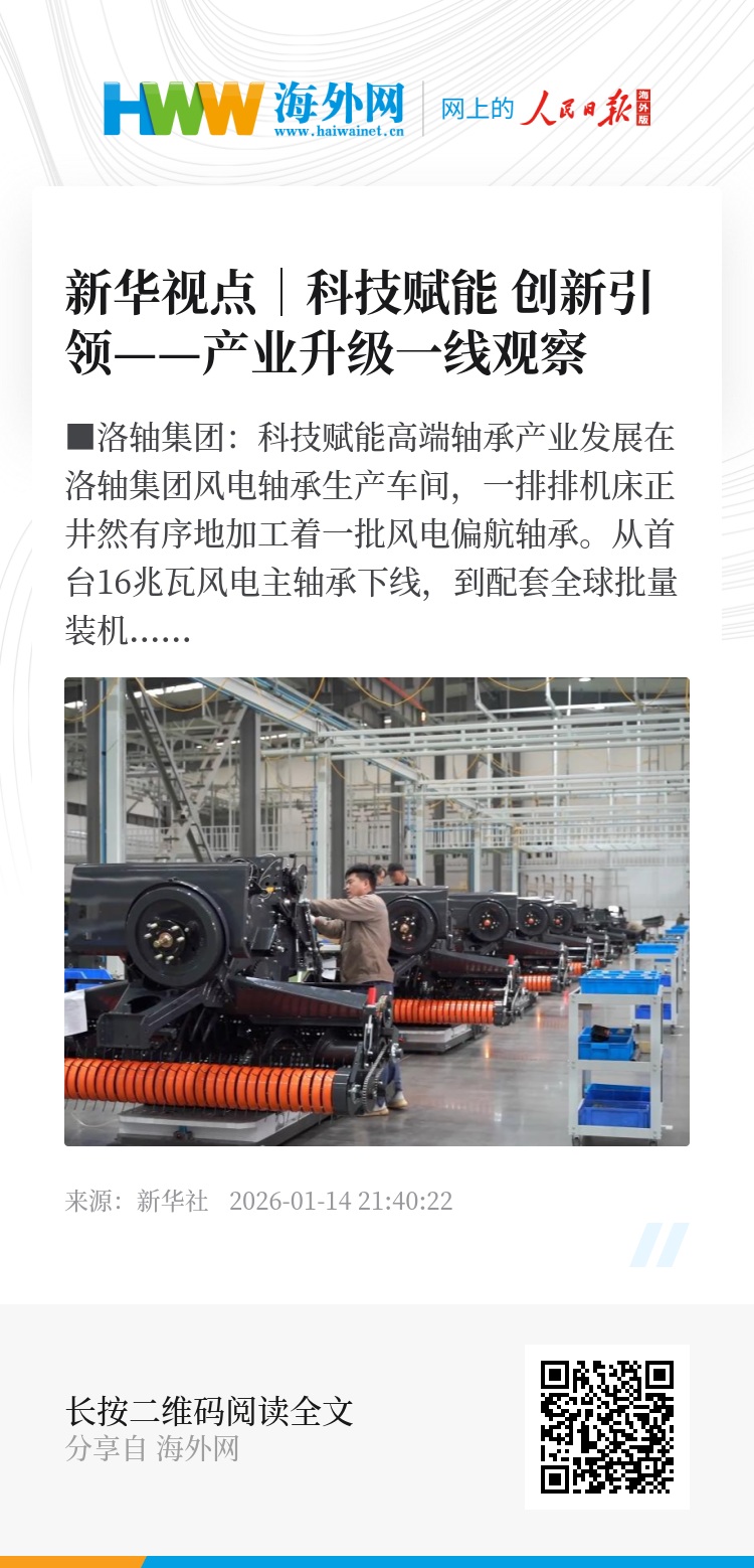 从首台16兆瓦风电主轴承下线,到配套全球批量装机的18兆瓦风电机组,洛轴的风电主轴承国内市场占有率超40%。