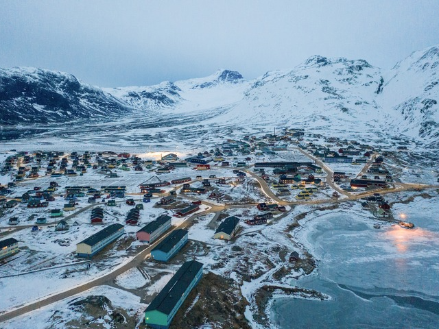 这是2025年3月21日拍摄的丹麦自治领地格陵兰岛纳尔萨克镇(无人机照片)。新华社记者彭子洋摄