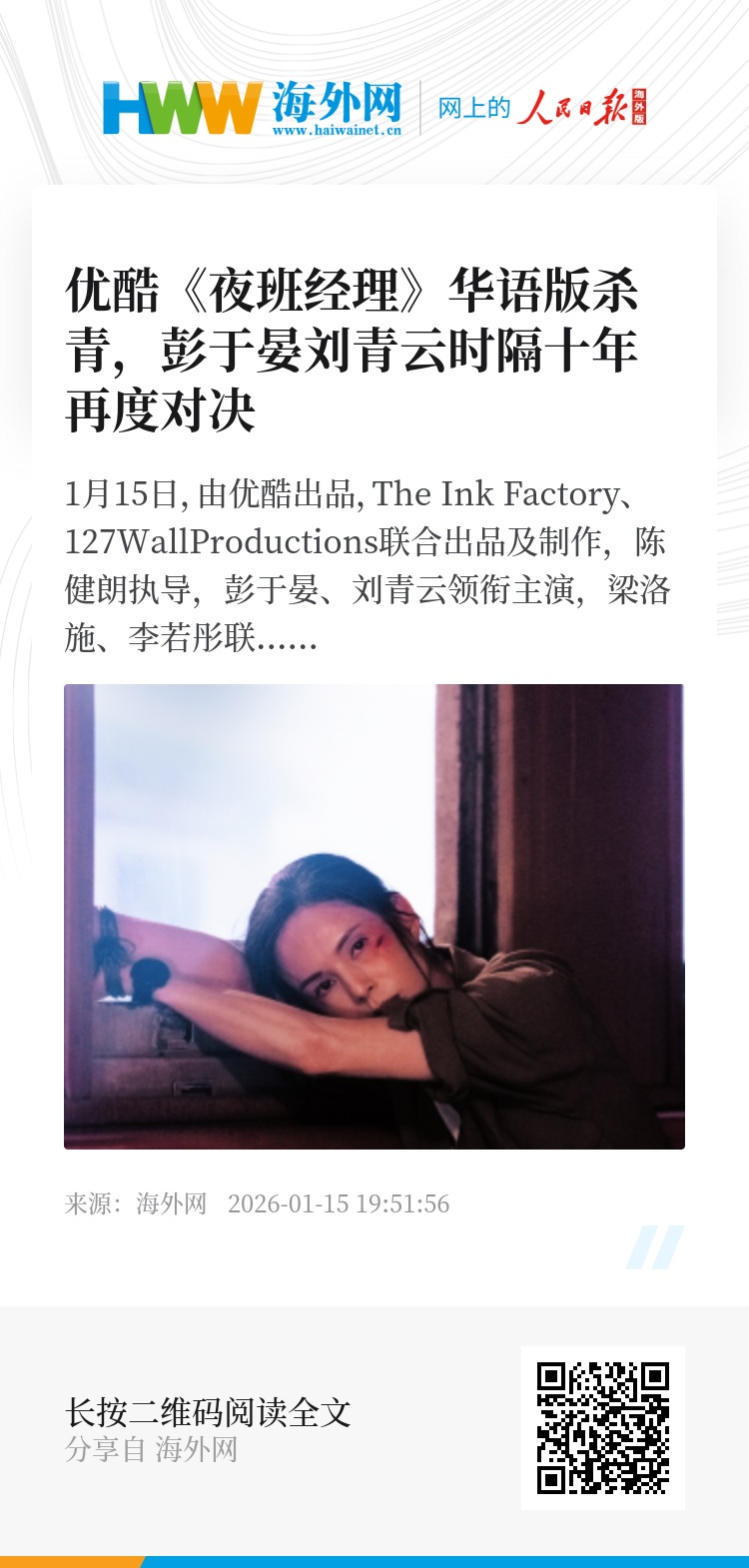 1月15日,由优酷出品,The Ink Factory、127WallProductions联合出品及制作,陈健朗执导,彭于晏、刘青云领衔主演,梁洛施、李若彤联袂出演的国际化精品剧集《夜班经理》华语版,今日官宣阵容。该剧改编自英国间谍小说家约翰·勒卡雷同名作品及The Ink Factory同名剧集《夜班经理》,将于优酷播出。