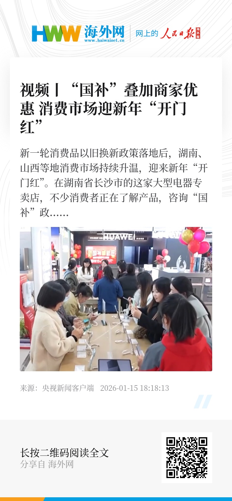 新一轮消费品以旧换新政策落地后,湖南、山西等地消费市场持续升温,迎来新年“开门红”。