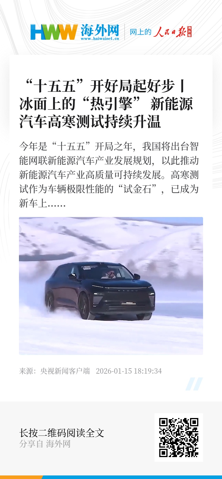 当前,中国汽车产业规模持续扩大,技术创新加速突破,产业生态持续完善。在此背景下,新能源汽车冬季高寒测试也更加聚焦于全场景、精细化的性能验证,进一步推动汽车产业高质量发展。