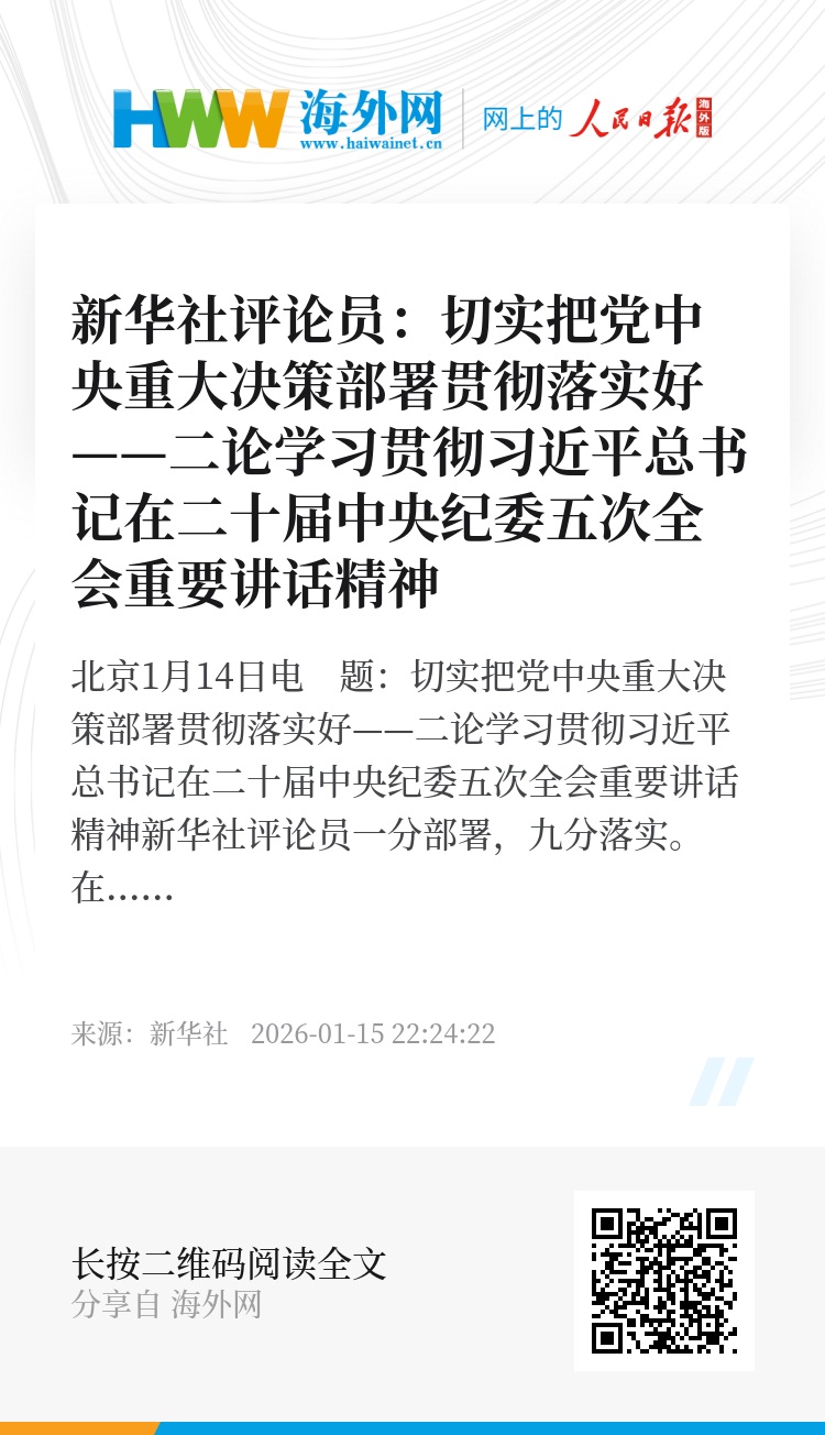 新华社北京1月14日电 题:切实把党中央重大决策部署贯彻落实好——二论学习贯彻习近平总书记在二十届中央纪委五次全会重要讲话精神