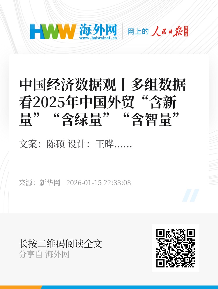 中国经济数据观丨多组数据看2025年中国外贸“含新量”“含绿量”“含智量”