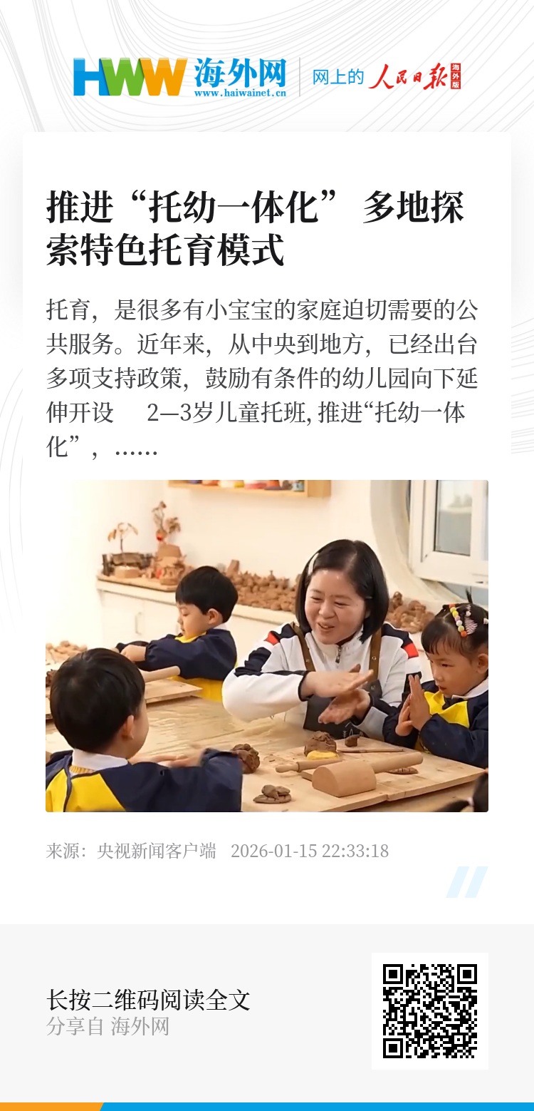 近期,《托育服务法草案》征求意见,明确将普惠托育服务有序纳入基本公共服务范围,并提出构建主体多元、安全优质、价格合理、方便可及的托育公共服务体系。近年来,除了幼儿园办托班,多地还探索了“医育融合”“社区嵌入式”等特色托育模式。