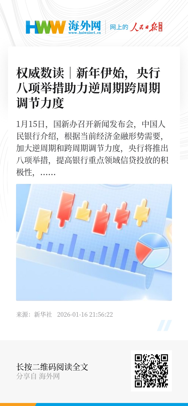 1月15日,国新办召开新闻发布会,中国人民银行介绍,根据当前经济金融形势需要,加大逆周期和跨周期调节力度,央行将推出八项举措,提高银行重点领域信贷投放的积极性,加大结构性货币政策工具支持力度,进一步助力经济结构转型优化。