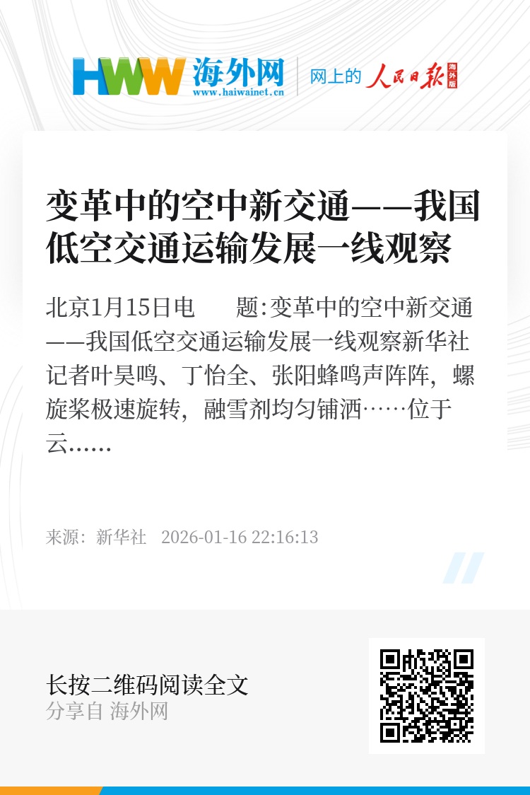 新华社北京1月15日电 题:变革中的空中新交通——我国低空交通运输发展一线观察