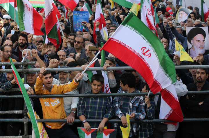 2025年11月4日,民众在伊朗首都德黑兰参加反美反以集会。当天,伊朗多地民众举行集会,谴责美国霸权和以色列的侵略行为。新华社发
