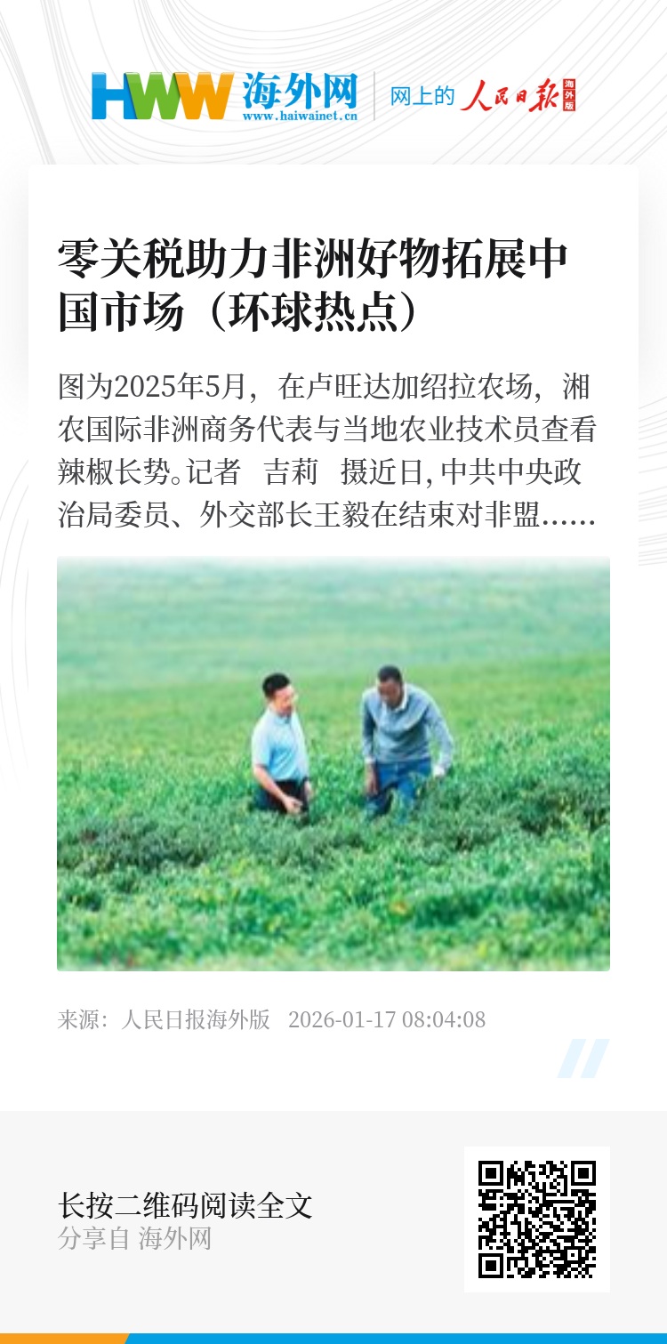 同时,值得关注的是,随着中国对非零关税政策的推进,中国消费者获得越来越丰富的消费选择。一些中国企业在赴非洲国家投资设厂的过程中,也进一步提升产品创新能力,推动中非在农业、制造业、基础设施等领域的共同发展,形成共赢局面。