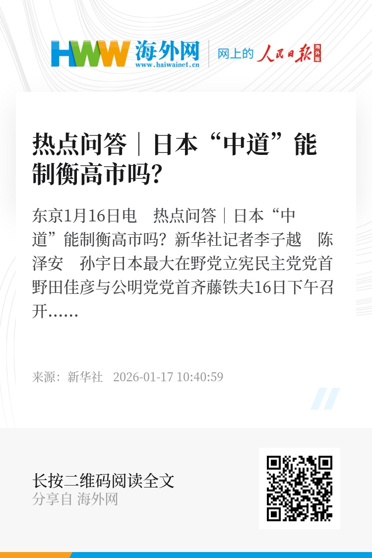 新华社东京1月16日电 热点问答|日本“中道”能制衡高市吗?