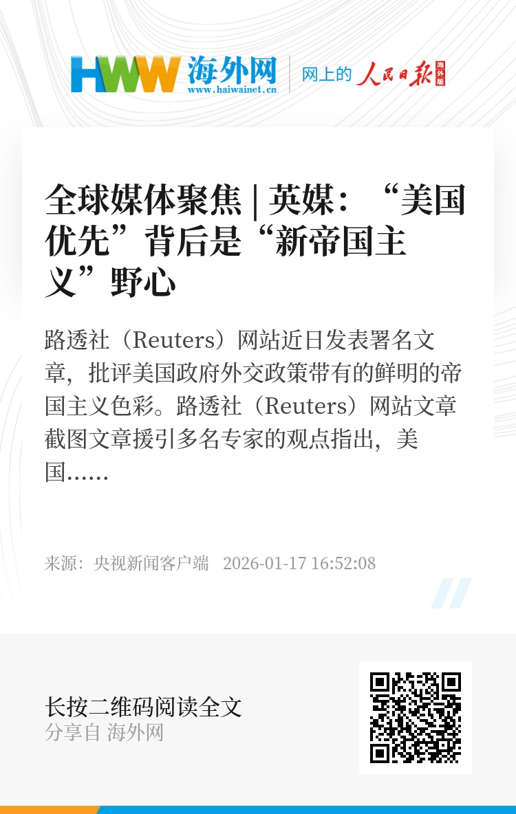 文章援引多名专家的观点指出,美国政府的外交政策以“美国优先”、维护国家安全和经济利益为名,行单边主义和资源控制之实。其在加沙地带、委内瑞拉和格陵兰岛等地的行动被广泛批评为“新帝国主义”,挑战了现行国际秩序。