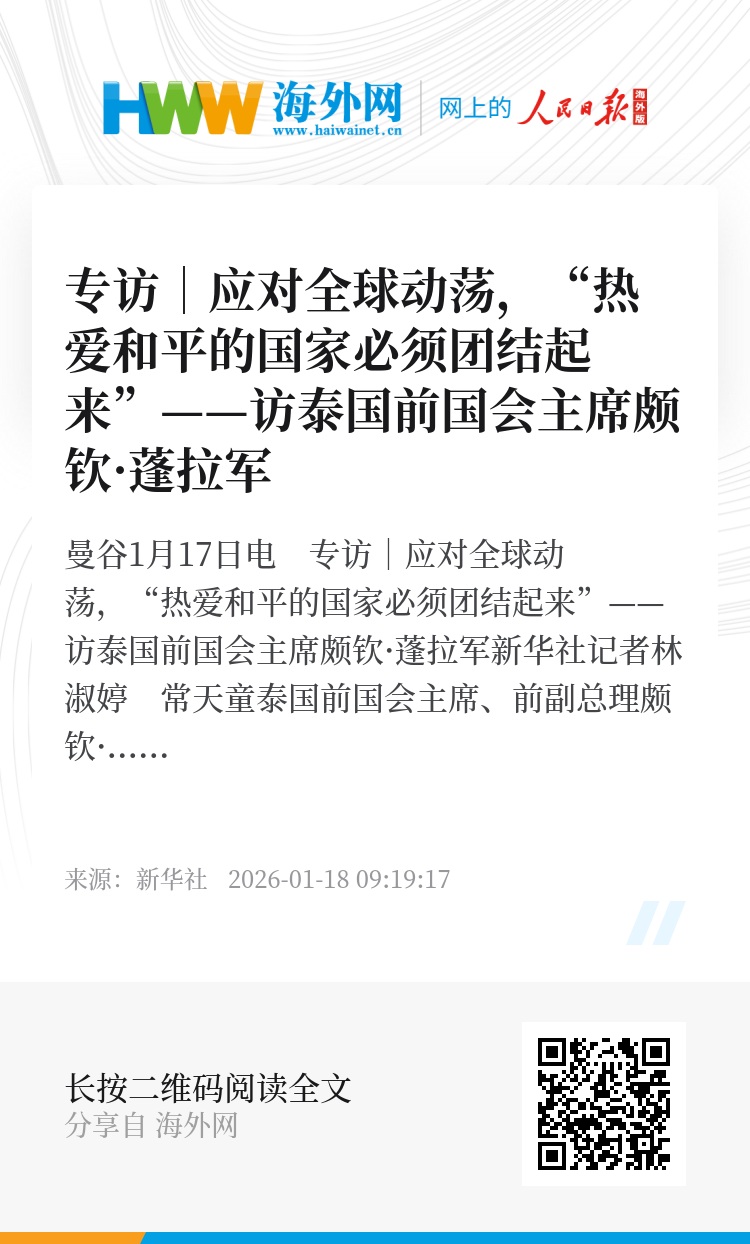 新华社曼谷1月17日电 专访|应对全球动荡,“热爱和平的国家必须团结起来”——访泰国前国会主席颇钦·蓬拉军