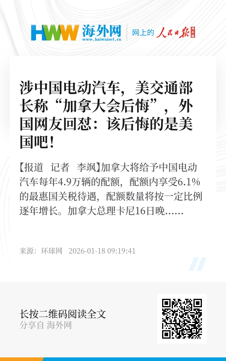 有自称是加拿大人的网友表示不仅不后悔,还很“激动”:“作为一名加拿大人,我为我们将能买到能负担得起的电动汽车而非常激动,这将改变我们的生活。”↓