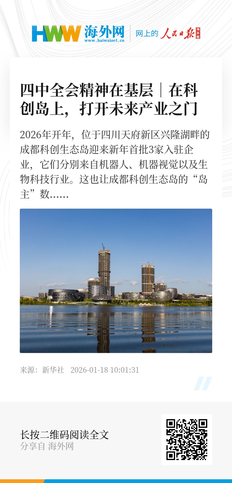 2026年开年,位于四川天府新区兴隆湖畔的成都科创生态岛迎来新年首批3家入驻企业,它们分别来自机器人、机器视觉以及生物科技行业。这也让成都科创生态岛的“岛主”数超过50个。