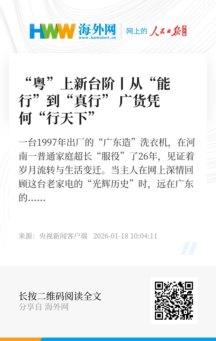 一台1997年出厂的“广东造”洗衣机,在河南一普通家庭超长“服役”了26年,见证着岁月流转与生活变迁。当主人在网上深情回顾这台老家电的“光辉历史”时,远在广东的厂家迅速上线回应:“我还在,感谢用户的长久信任和陪伴。”
