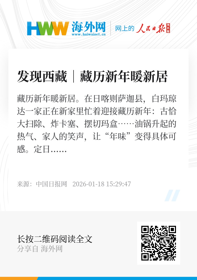 藏历新年暖新居。在日喀则萨迦县,白玛琼达一家正在新家里忙着迎接藏历新年:古恰大扫除、炸卡塞、摆切玛盒……油锅升起的热气、家人的笑声,让“年味”变得具体可感。定日地震一年后,越来越多受灾群众搬进新居,在熟悉的习俗与烟火气里,迎来一个更踏实、更温暖的新年。(记者 华旦尼玛 郭研奇)