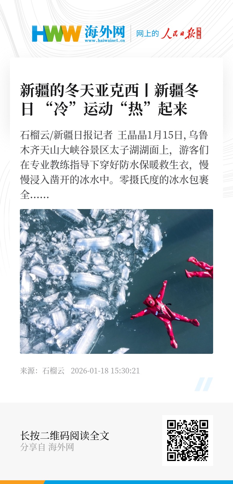 冰帆运动正在新疆多点开花。去年,昭苏玉湖和赛里木湖都曾举办冰帆比赛。今年,新疆多地还推出雪地摩托等特色项目,丰富冰雪体验维度。这些多元化的冰雪业态,正推动传统冬季旅游与冰雪运动深度融合,让新疆的冬天摆脱沉寂,焕发生动暖意。“我们持续丰富冰雪文体旅融合产品,就是要把‘冷资源’转化为带动群众增收的‘热产业’。”博湖县文化体育广播电视和旅游局局长袁阳表示。