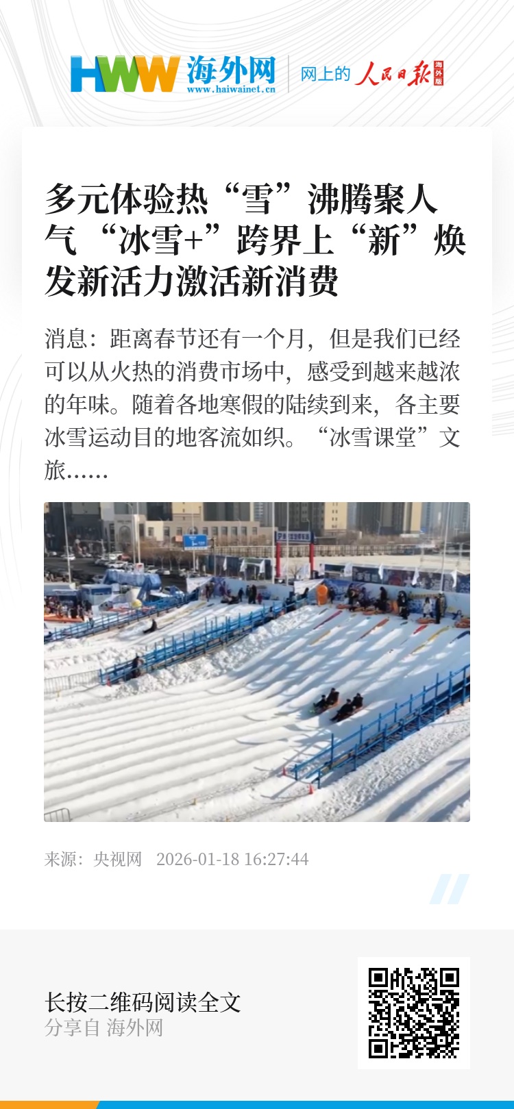 央视网消息:距离春节还有一个月,但是我们已经可以从火热的消费市场中,感受到越来越浓的年味。随着各地寒假的陆续到来,各主要冰雪运动目的地客流如织。