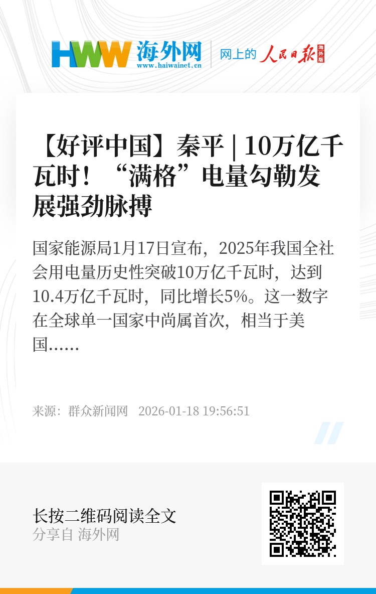 国家能源局1月17日宣布,2025年我国全社会用电量历史性突破10万亿千瓦时,达到10.4万亿千瓦时,同比增长5%。这一数字在全球单一国家中尚属首次,相当于美国全年用电量的两倍多,超过欧盟、俄罗斯、印度、日本四个经济体的年用电量总和。