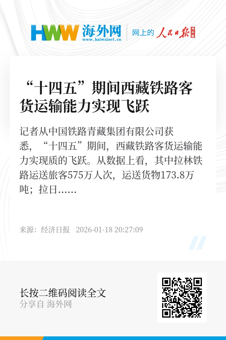 记者从中国铁路青藏集团有限公司获悉,“十四五”期间,西藏铁路客货运输能力实现质的飞跃。从数据上看,其中拉林铁路运送旅客575万人次,运送货物173.8万吨;拉日铁路运送旅客795.5万人次,运送货物428.4万吨;青藏铁路运送进出藏旅客超1225万人次,运送货物超3450万吨。三条铁路有力保障了西藏经济社会发展与民生需求。