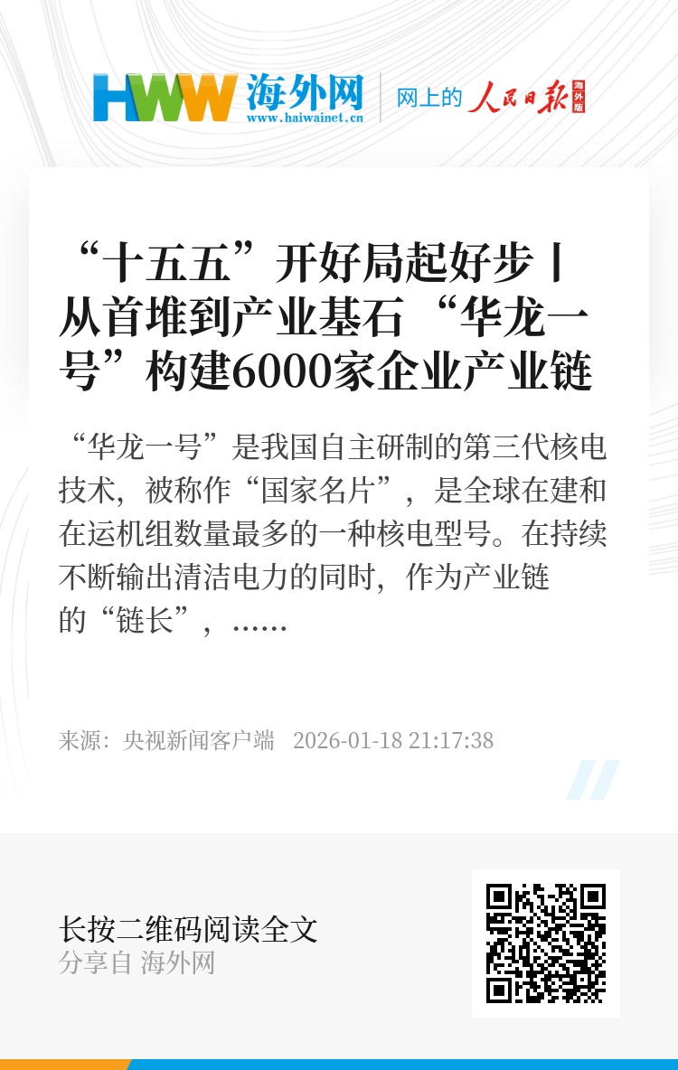 “华龙一号”是我国自主研制的第三代核电技术,被称作“国家名片”,是全球在建和在运机组数量最多的一种核电型号。在持续不断输出清洁电力的同时,作为产业链的“链长”,在“华龙一号”的周围有一个数千家企业形成的“朋友圈”,这些企业共同开发新技术、研制新装备、持续突破关键设备核心技术。让我们一起走近“华龙一号”,看看它和它朋友圈的故事。