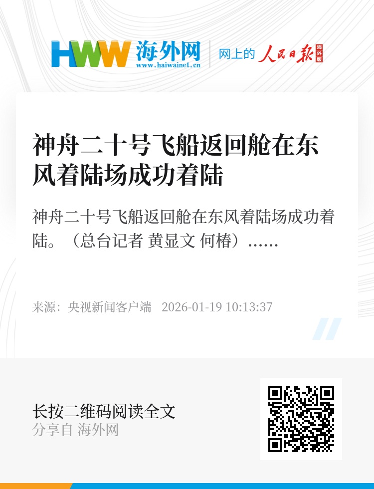 神舟二十号飞船返回舱在东风着陆场成功着陆。(总台记者 黄显文 何椿)