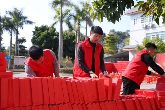 发放现场秩序井然,志愿者们细心核对信息、搬运物资,将一份份满载深情的“温暖礼包”送到群众手中。针对行动不便的特殊群体,志愿者团队同步开展入户走访,把关怀送到家门口、送到心坎上,确保每一份爱心都精准落地、不打折扣。其中,广东省乡村发展协会会员单位广东丰收工程设计有限公司捐赠的价值50万元爱心物资,为本次行动提供了坚实支撑。