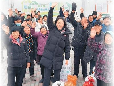 1月14日,郭翠玲(中)在河北省唐山市迁西县徐庄子村收山货。受访者供图