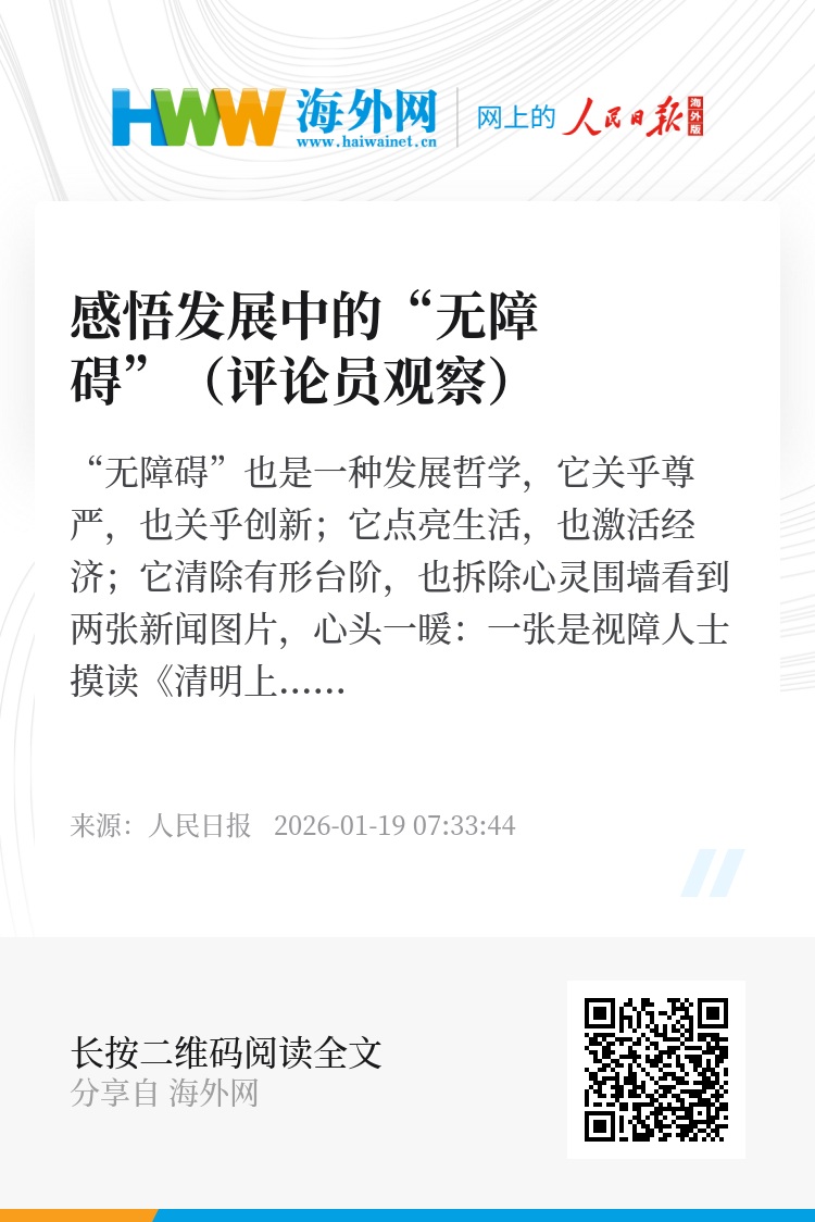 “无障碍”也是一种发展哲学,它关乎尊严,也关乎创新;它点亮生活,也激活经济;它清除有形台阶,也拆除心灵围墙