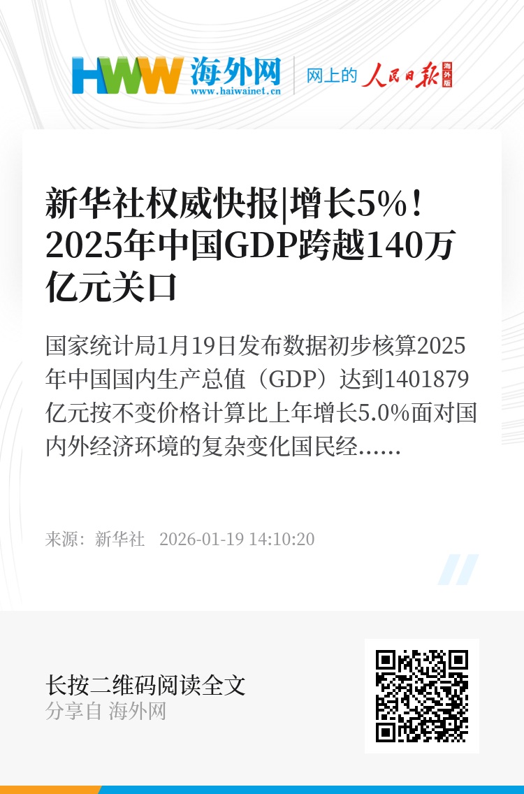 2025年中国国内生产总值(GDP)达到1401879亿元