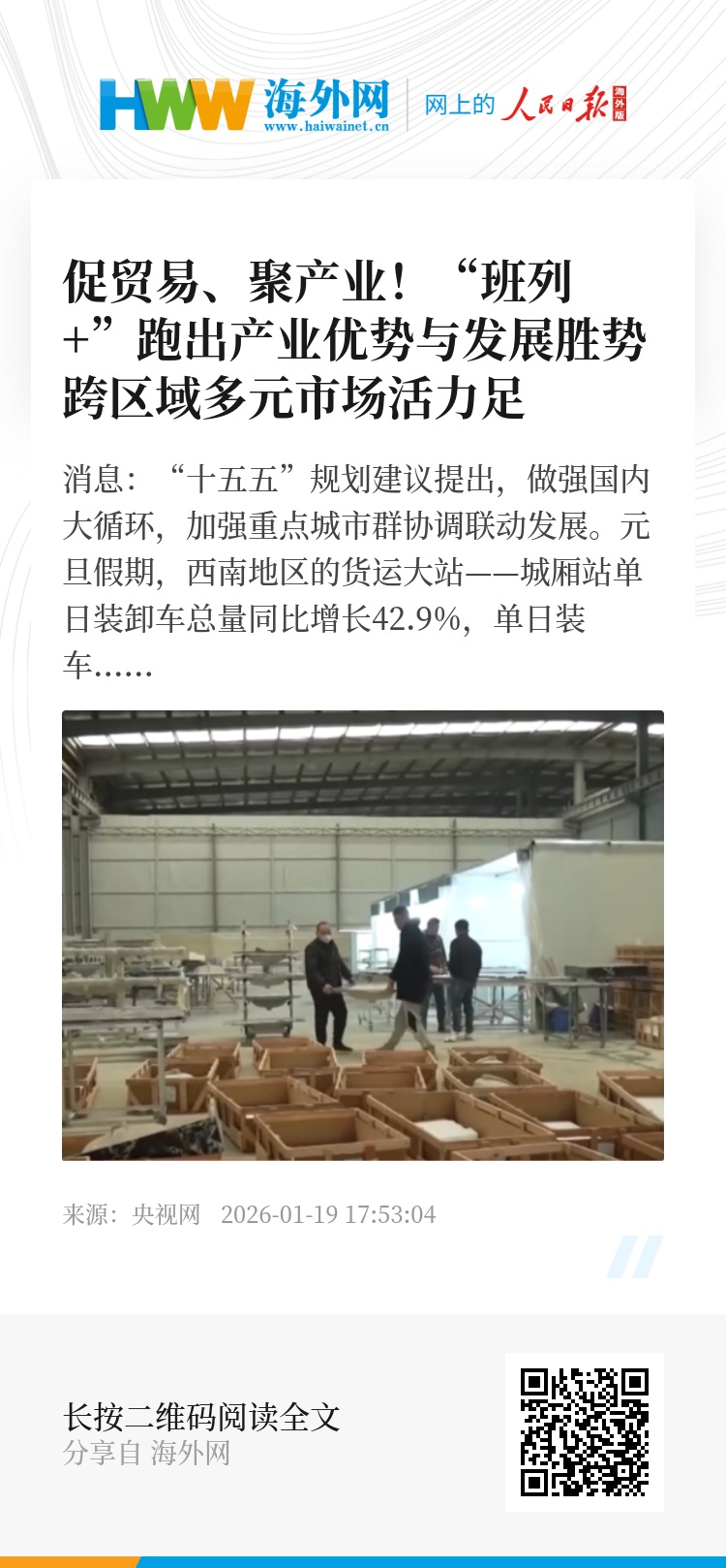 除了X(行)8658次班列,成都城厢站还承担着多条国内货运班列的运输。新年新商机,一趟趟货运班列穿梭往来,“班列+”正不断扩大各地市场“朋友圈”。