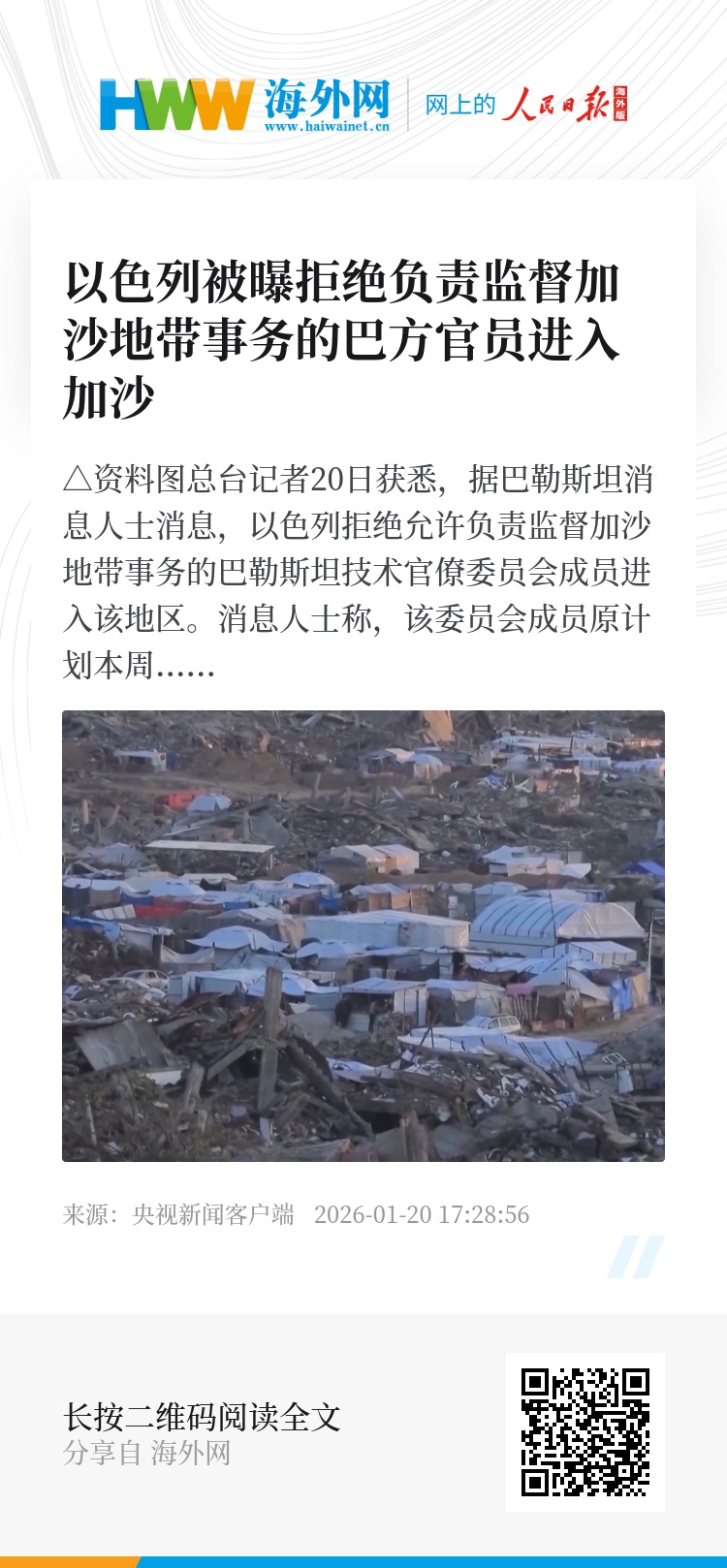 截至目前,以色列总理办公室及政府领土活动协调处尚未就此做出回应。(总台记者 梁慧)